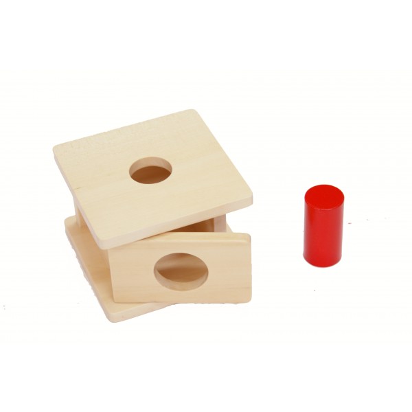 Klasická dřevěná vkládačka, kde se dítě zdokonaluje v jemné motorice a tříprstém úchopu. Bočním otvorem si dítě ověřuje, že vkládaný předmět se skutečně přemístil dovnitř, odkud jej pak může vyndat.