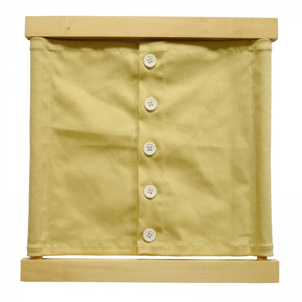 Čtvercový rám o délce 30 cm má ze dvou stran navlečeny dva díly látky sepnuté knoflíky.